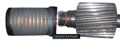 Metal metal sürtünmesi sonucu aşınmış dişli milinin kaynak